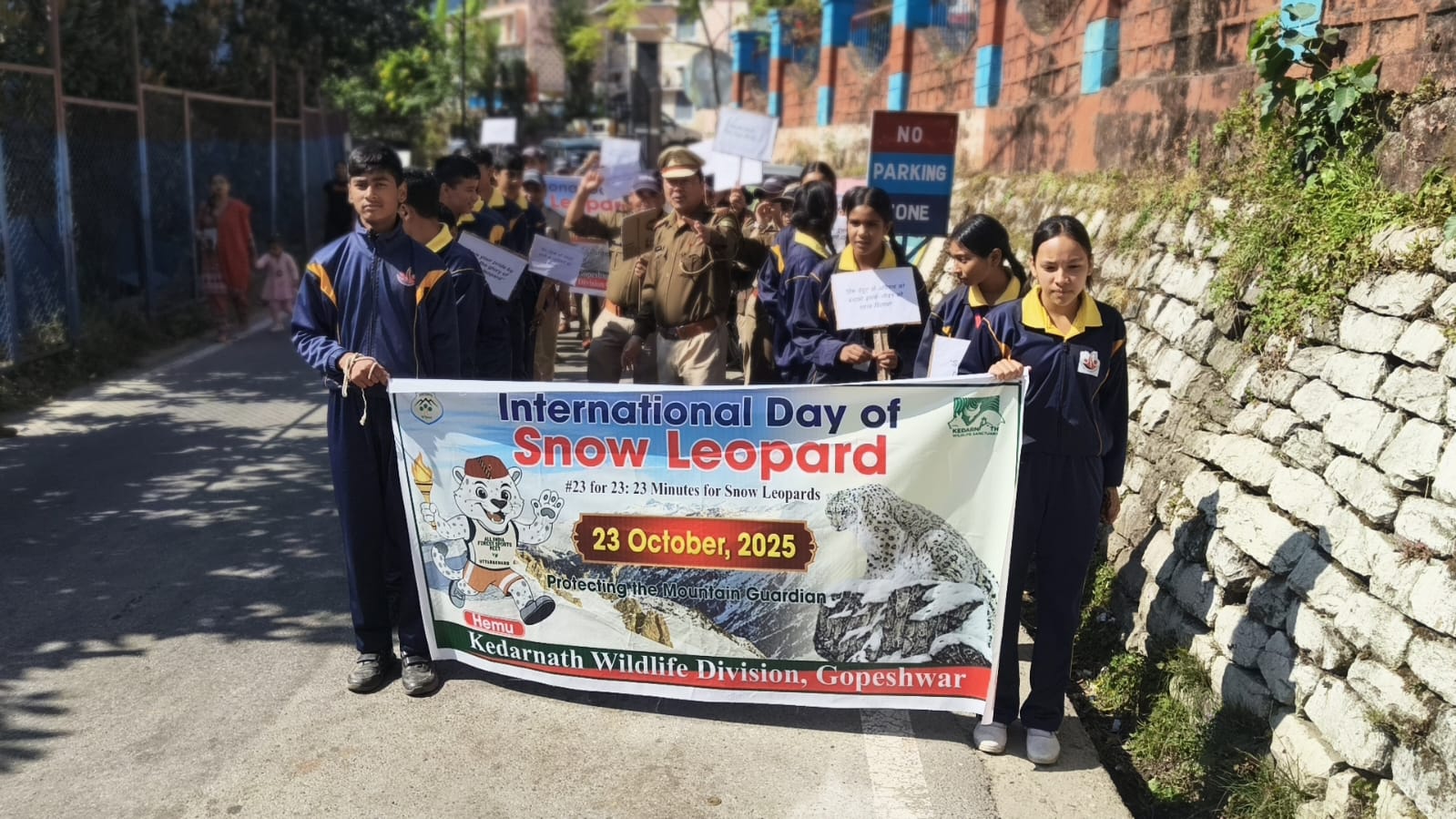 चमोली/ अंतर्राष्ट्रीय हिम तेंदुआ दिवस के अवसर पर गुरुवार को केदारनाथ वन्यजीव प्रभाग द्वारा गोपेश्वर मुख्यालय में अलकनंदा भूमि संरक्षण वन प्रभाग के साथ मिलकर जन-जागरूकता रैली का आयोजन किया गया। इस रैली में वन विभाग के अधिकारी कर्मचारी, स्कूली छात्र-छात्राएं, ईडीसी (EDC) सदस्य एवं स्थानीय नागरिकों ने उत्साहपूर्वक भाग लिया।
